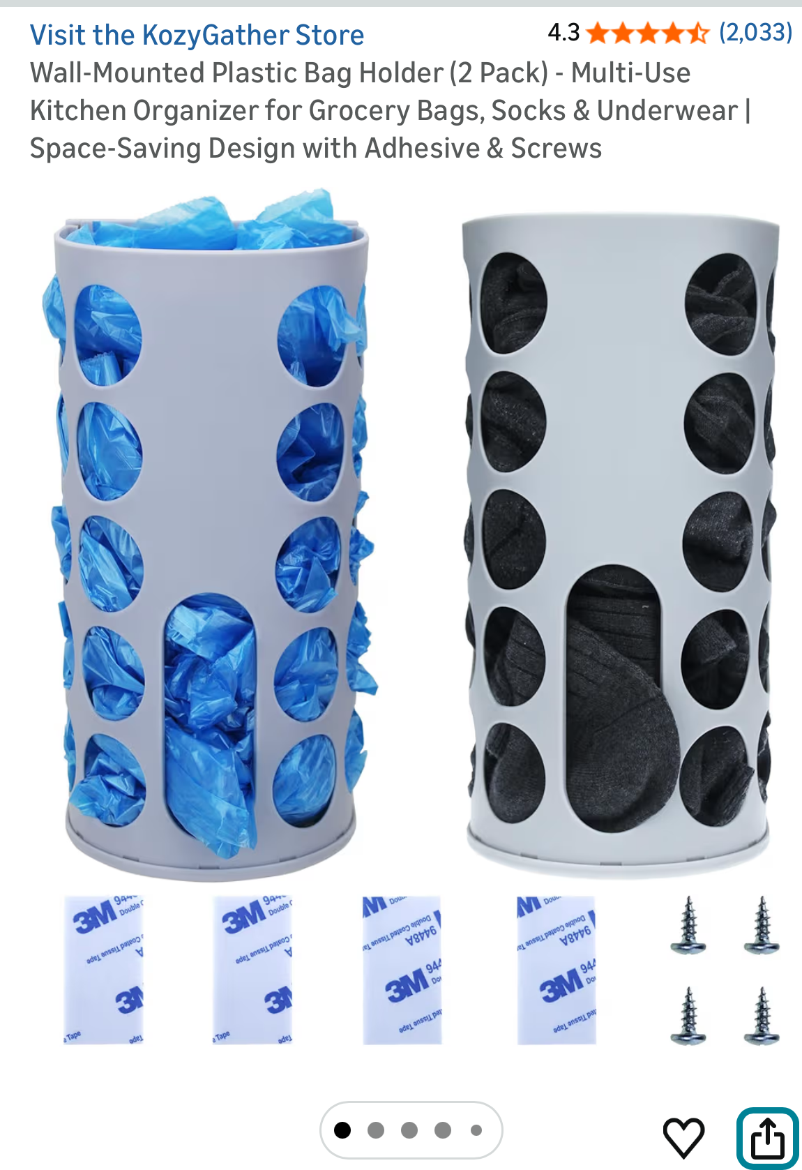 We have them attached to my daughter’s oxygen concentrator to easily locate her oxygen mask or nasal canuala. We also have them hanging on the back of her bed to hols the nebulizer mask or then cpap/bipap mask. I really like that they are strong and can hold quite a bit.